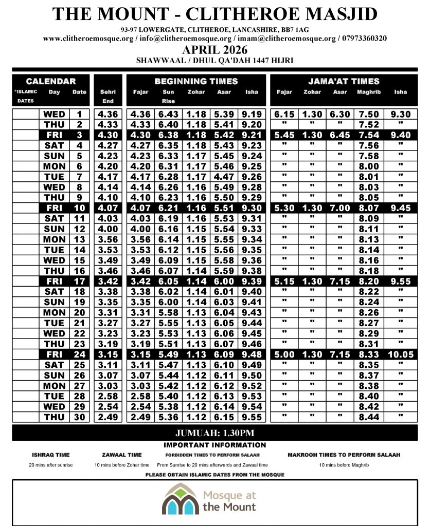 Prayer Timetable